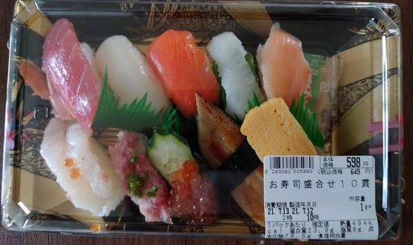 とあるお店で買ったお寿司を載せておきますね。